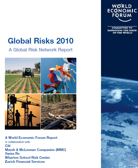 En el del año 2010, el World Economic Forum no ve recuperación económica por ningún lado, sino todo lo contrario, los riesgos de una profundización en la crisis son ubícuos. Las principales amenazas que se ciernen sobre el mundo vuelven a ser, por tercer año consecutivo, de naturaleza económica y tocan de lleno a la pésima gestión de la crisis por parte de los Gobiernos del mundo.