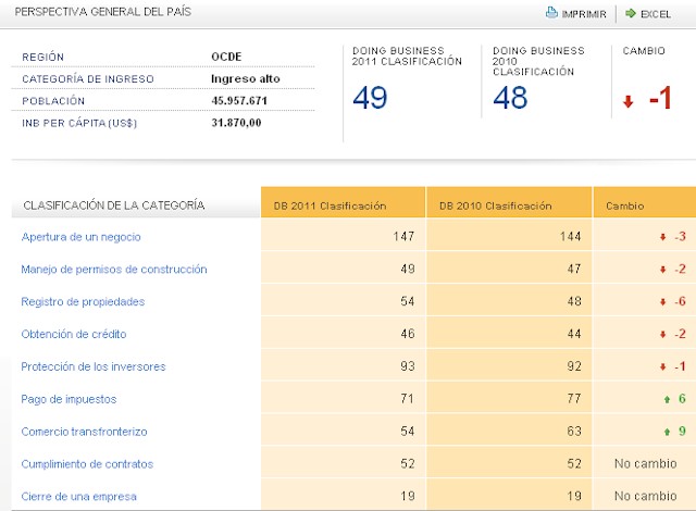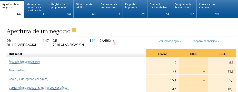 Y es que, España ha perdido un puesto en este ranking internacional a lo largo de los últimos 12 meses, al pasar del 48 (los datos de 2010 han sido corregidos en este último informe debido a cambios metodológicos) al 49. Así, según el informe, resulta más sencillo hacer negocios en países de la talla de Armenia, Puerto Rico o Hungría que en España.