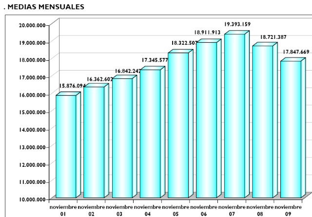 "Vamos a acabar el año en una medida de unos 18 millones de afiliados, algo mejor que lo que habíamos previsto al comienzo del ejercicio", indicó para añadir que 2009 cerrará "con un superávit relativamente confortable, pues ya estamos en tasas de variación interanual de afiliación mejores de lo que han sido los diez primeros meses del año".