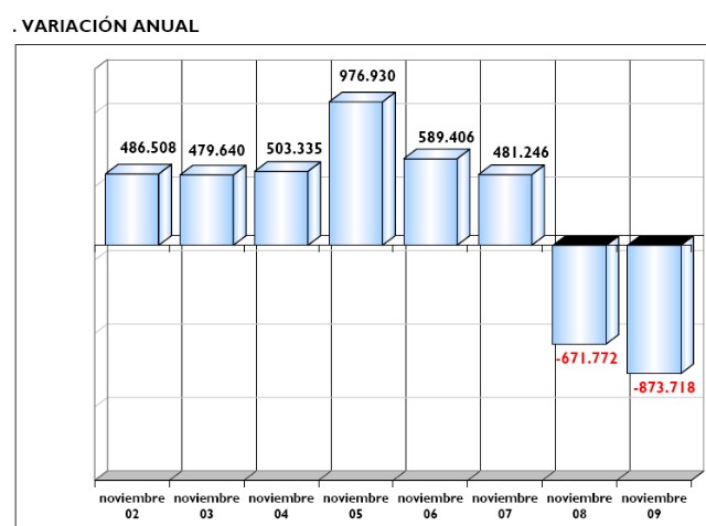 Pese a ello, la destrucción de empleo avanzó a un ritmo récord el pasado noviembre. En concreto, la afiliación descendió un 4,67% interanual, lo que se traduce en la desaparición de 873.718 puestos de trabajo en los últimos 12 meses.