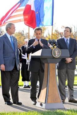 La oferta de Bush de presidir la cumbre de líderes se produjo a pesar de que la Casa Blanca había dicho previamente que no iba a haber grandes anuncios en la reunión trilateral. Sarkozy y Durao Barroso llegaron a la base aérea de Andrews, en las afueras de Washington, procedentes de Canadá, donde participaron en una reunión con el recién reelecto primer ministro Stephen Harper.