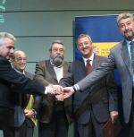 L D (Agencias) El Palacio de la Moncloa ha sido el escenario en el que se ha materializado el acuerdo para la reforma laboral, que han firmado el ministro de Trabajo, Jesús Caldera, los secretarios generales de CCOO y UGT, José María Fidalgo y Cándido Méndez, respectivamente, y los presidentes de la CEOE, José María Cuevas, y de CEPYME, Jesús Bárcenas, en un acto presidido por el jefe del Ejecutivo, José Luis Rodríguez Zapatero.