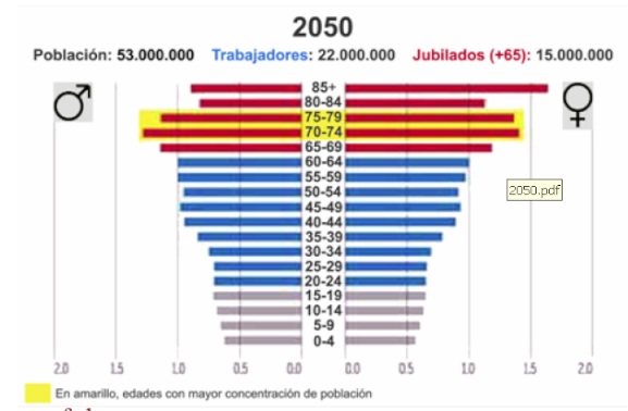 Pirámide demográfica esperada para España en 2050 (Fuente: Fedea; pag. 10)