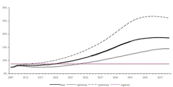 Evolución del gasto en pensiones sobre el PIB (Fuente: Fedea; pag. 13)