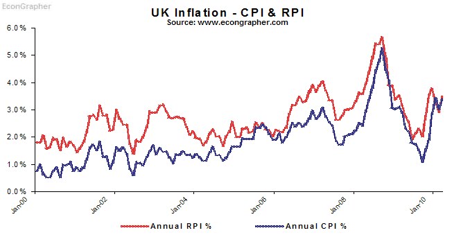 Esas libras se han extendido rápidamente por el resto del tejido productivo llamando a la puerta del verdadero coco de toda crisis económica: la inflación y su corolario de subida de precios. Mientras que en la zona euro la inflación se ha mantenido a raya gracias a la atonía de la demanda y a que el BCE no ha cometido ninguna locura, en el Reino Unido -ya sometido a presiones inflacionistas en plena fase de euforia- la inflación sobrepasa con holgura el 3% y llegó casi a tocar el 6% en 2008.