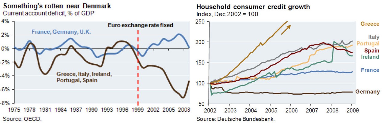 La cuestión es: "¿Puede el Banco Central Europeo mantener la rígida política monetaria de Alemania (anti-inflacionista) y la debilidad de la periferia al mismo tiempo? Este es el "conundrum [enigma, puzzle] que estuvo detrás del colapso del mecanismo previo a la actual Unión Monetaria", el Mecanismo de Cambio de Tipos Europeo que estableció el denominado Ecu (el antecesor del euro en los años 90). El proyecto fracasó en 1992, ya que Reino Unido precisaba una política monetaria más flexible que Alemania.