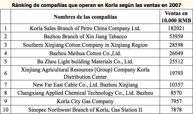 En definitiva, Korla cuenta con una industria líder y dominante con el petróleo, los textiles, la energía, el cemento, los minerales, el papel y los materiales de construcción como principales industrias, de la que Pekín no se quiere desprender.