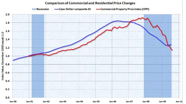 En estos momentos, una de las mayores amenazas a la salida de la recesión de EEUU es el desplome del mercado inmobiliario no residencial. Los inversores están convencidos de la mala situación del sector y algunos de los más destacados, como Wilbur L. Ross y George Soros, coinciden en que su colapso tendrá "consecuencias terroríficas" sobre el sector financiero, que acumula casi 3,5 billones en créditos al sector.