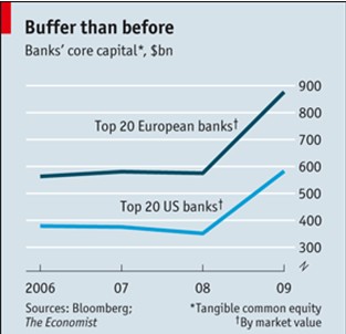 Estos problemas de la banca vienen a pesar de que en los dos últimos años se han aumentado los ratios de capital y se ha mejorado su posición de liquidez (como muestran los dos siguientes gráficos del informe del Banco de Inglaterra y de The Economist), muy deteriorada en la fase expansiva del ciclo, en la cual llevaron a cabo la práctica que se conoce como el "descalce de plazos" o, lo que es lo mismo, endeudarse masivamente a corto plazo e invertir a largo plazo.