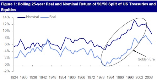 Por edad de oro se entiende en el informe el periodo de tiempo que va desde principios de los ochenta hasta el 2008. Es una época en la que los beneficios de los activos promedian un 7,3%, con 15 años superando el 10%. Durante los 60 años anteriores se había desarrollado un beneficio promedio del 4%, por lo que se trata de una anomalía que se debe explicar.