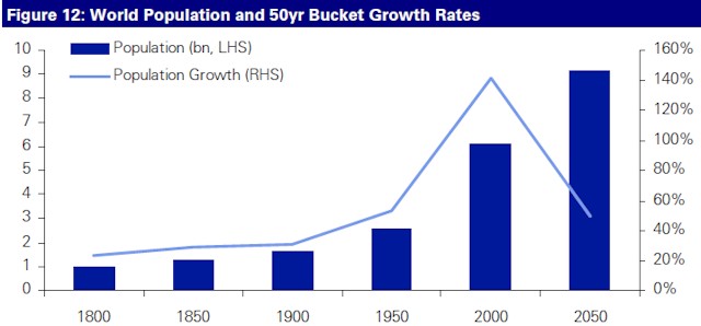 Esta anomalía sobre el promedio se ha producido cuando la mayor explosión demográfica de la historia entre 1950 y 2000 ha alcanzando en esos 50 años un crecimiento del 142%. Es una franja amplia de población a nivel mundial que ha llegado progresivamente a la edad laboral, ganando un poder adquisitivo que le ha permitido demandar activos de todo tipo. Pero actualmente el proceso se está comenzando a invertir porque los baby boomers están envejeciendo paulatinamente.