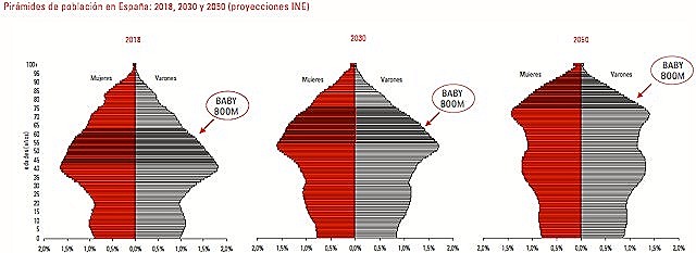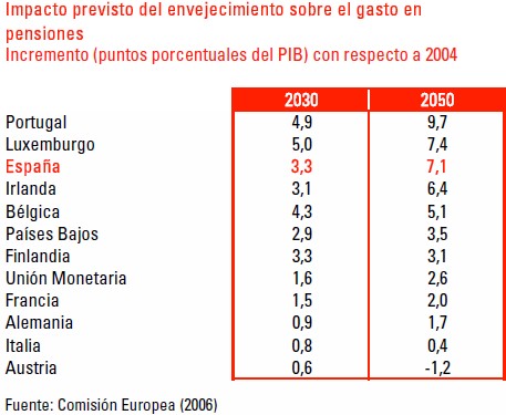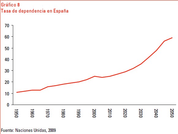 En el caso concreto de España, la depresión demográfica y el creciente envejecimiento de la población supondrán un aumento constante del gasto público en pensiones y sanidad, dos pilares básicos del modelo sociopolítico vigente en la actualidad.