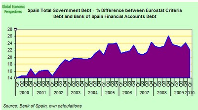 El volumen de deuda que el Estado oculta a la opinión pública ha ido creciendo desde la introducción del euro, al pasar del 14% en el año 2000 al 22% de la deuda real en 2010, tal y como señala Edward Hugh, analista de RGE Monitor, la firma de análisis que dirige el afamado economista de EEUU Nouriel Roubini.