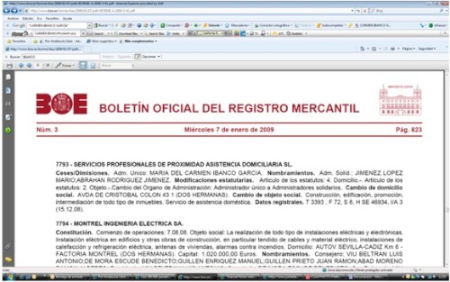 Pero Carmen Ibanco García formó parte de la empresa SERVICIOS PROFESIONALES DE PROXIMIDAD ASISTENCIA DOMICILIARIA SL, con sede en Dos Hermanas, cuyo objeto era y es "Trabajos de construcción de nueva planta así como reparación y conservación de todo tipo de edificaciones. -Trabajos de albañilería, fontanería, electricidad, carpintería y herrería. -Comercio de materiales de construcción, electricidad, fontanería, ferretería y pintura. -Aplicación de pinturas".