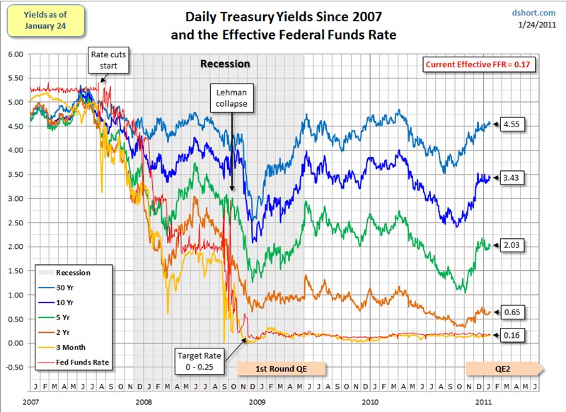 La Reserva Federal compró, tras el crash de 2008, una buena parte de los activos hipotecarios "tóxicos" de los bancos, y monetizó deuda del Gobierno a través del conocido Quantitative Easing 1 (QE1), que movilizó cerca de 1 billón de dólares. Más tarde, ampliaría dicha monetización de bonos mediante el QE Lite y el QE2, que siguen todavía en marcha.