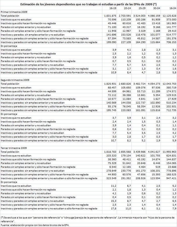 Así, si nos atenemos a los datos del segundo trimestre de 2009, las cifras oscilan entre los 550.000 y los 710.000 jóvenes, en función de las variables que escojamos: