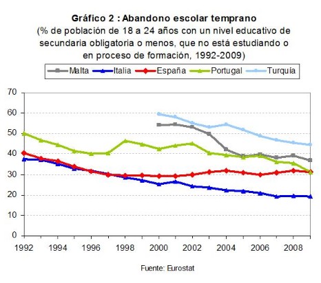 El problema es que esta situación no ha mejorado lo más mínimo en los últimos 15 años. A mediados de los 90 España ya contaba con un tercio de jóvenes que optaba por abandonar sus estudios. Sin embargo, otros países sí han avanzado: "Turquía ha reducido su diferencial con España a la mitad en los últimos 10 años, con lo que si no hacemos algo al respecto en breve habrá convergido y seremos definitivamente los últimos de la clase"; Portugal, por su parte, "ya nos ha alcanzado, cuando al inicio de esta década le sacábamos quince puntos", indican Felgueroso y Garicano.
