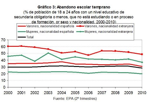 Este fenómeno está relacionado con la elevada tasa de paro juvenil, próxima al 40%, y el abultado volumen de fracaso escolar. En cuanto a este último punto, ambos autores alertan de que "uno de cada tres jóvenes españoles de 18 a 24 años abandona el sistema educativo sin conseguir un título de enseñanza secundaria post-obligatoria, es decir, 1 millón de jóvenes", según la oficina estadística europea Eurostat. Un fracaso tan sólo superado por Turquía y Malta a nivel continental.