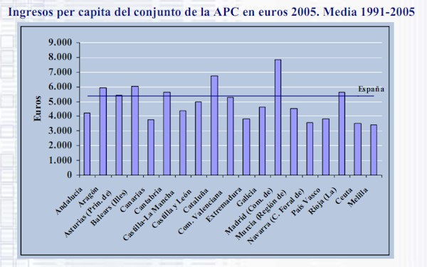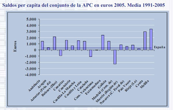 Por eso, la tabla 1 muestra que catalanes y madrileños han sido los que más han pagado entre 1991 y 2005 a la Administración Pública Central (APC), lo que corresponde con su alto nivel de renta per cápita.