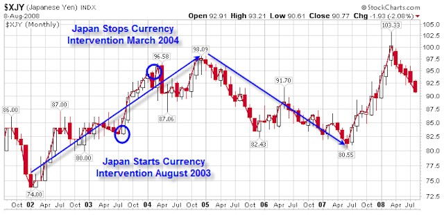 Es decir, los bancos centrales no pueden cambiar la tendencia predominante. Por ello, suponiendo que el punto de resistencia técnica del yen es la de 1995, si a partir de ahora cae no será a causa de la intervención sino más bien porque ya ha alcanzado sus fundamentales.