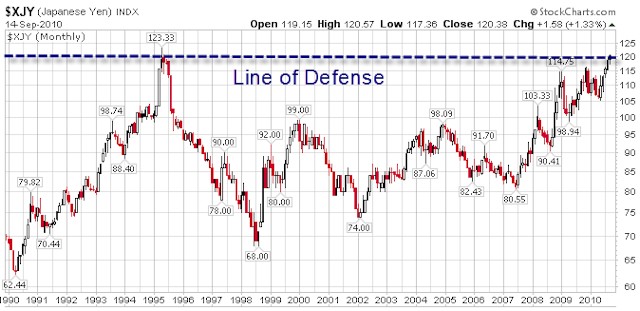 Tal y como muestra el siguiente gráfico, el yen, irónicamente, cayó en picado respecto al dólar poco después de que las autoridades niponas anunciaran el fin de la intervención para depreciar su divisa. Asimismo, seis años después de aquella intervención masiva, el yen ha vuelto a situarse en los valores máximos de hace 15 años, rozando así el punto de resistencia alcanzado en 1995.