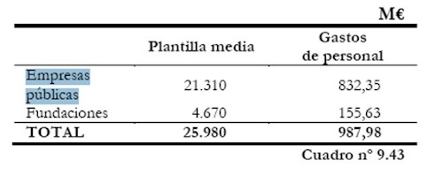 En concreto, en 2008, según la Cámara de Cuentas, había una plantilla media de 21.310 contratados en las empresas públicas y agencias andaluzas a los habría que sumar los 4.670 contratados arbitrariamente en las Fundaciones, esto es, 25.980 contratados. Sin embargo, en 2008, sólo había 24.777 funcionarios según la propia Junta de Andalucía. Esto, es 1.702 más contratados sin control que funcionarios por oposición.