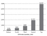 Los países libres han eliminado el trabajo infantil. No ocurre lo mismo con los países más reprimidos. El quintil de las economías menos libres tienen un 22,6 por ciento de la población entre 10 y 14 años trabajando, porcentaje que baja al 9,2 por ciento en el segundo y tercero y desaparece en el último quintil, el de las economías más libres. Las rentas medias generadas por el 10 por ciento más pobre en los cuatro primeros quintiles está, entre 1.185 y los 1.582 dólares. Pero en los países más libres, el 10 por ciento más pobre genera de media 6.451 dólares del año 2000. El índice de pobreza, según lo define las Naciones Unidas, es mayor en las economías más reprimidas que en las más libres.