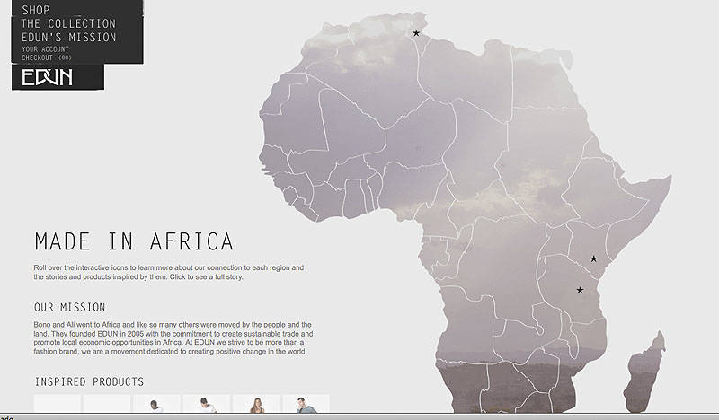 Nuevo capítulo en las desaventuradas correrías solidarias de Bono, el cantante de U2, tras algunos episodios chuscos anteriores como el traslado del conglomerado empresarial de su grupo desde Irlanda hasta Holanda para pagar menos impuestos, la decepción llega ahora de Edun, una compañía creada para "crear comercio sostenible y promover oportunidades económicas" y que hace del "Made in Africa" uno de sus leitmotivs ha trasladado casi toda su producción a China, por "problemas de calidad y solidez".