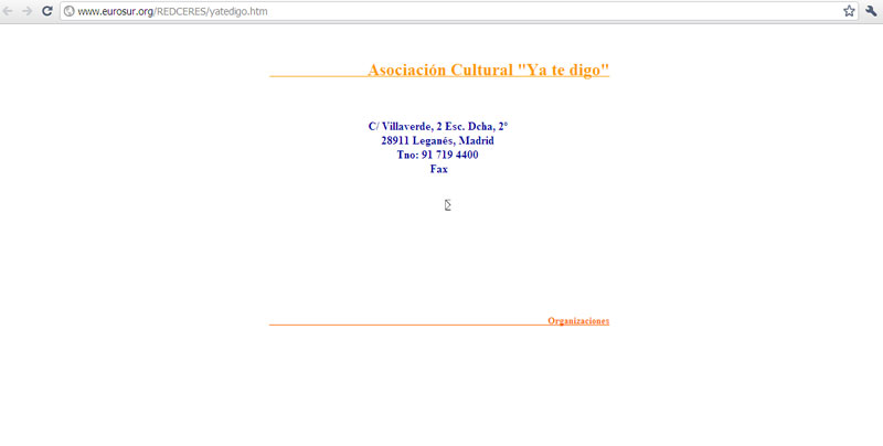 La asociación carece de página web, por lo que es imposible hacer el seguimiento de sus proyectos. Todo lo que ofrece por Internet es una página estática con su dirección postal y de correo electrónico junto al teléfono donde se puede contactar con ellos. La web de esta ONG tan afortunada es esta: