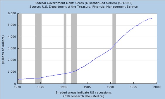Evolución de la Deuda del gobierno federal estadounidense bruta desde 1970 hasta 2000, en miles de millones de dólares