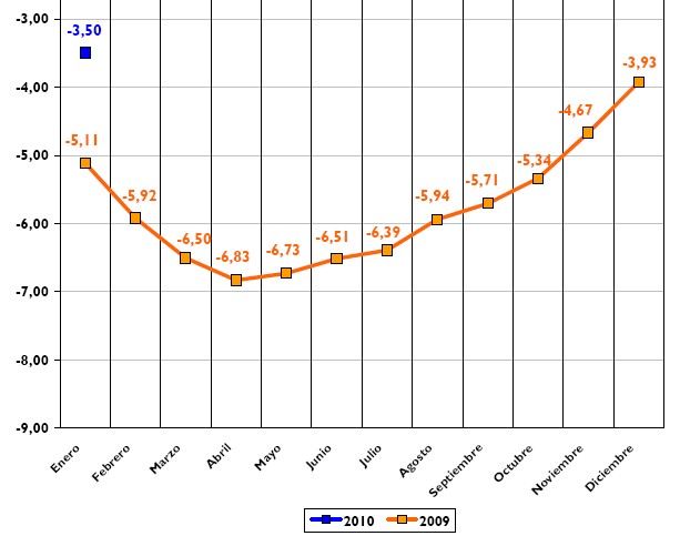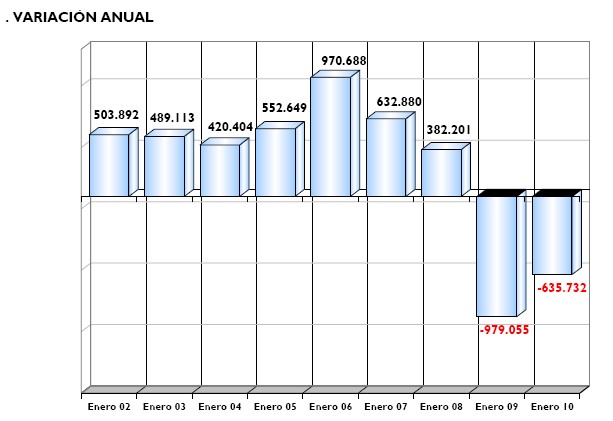 La Seguridad Social perdió 257.828 afiliados (-1,45%) en enero. Este descenso, que supone la sexta caída mensual consecutiva de la afiliación, es inferior al registrado en enero de 2009, cuando el número de cotizantes se redujo en casi 350.000 personas.