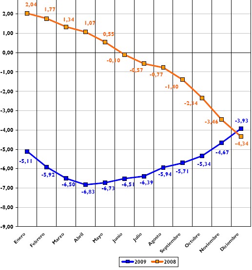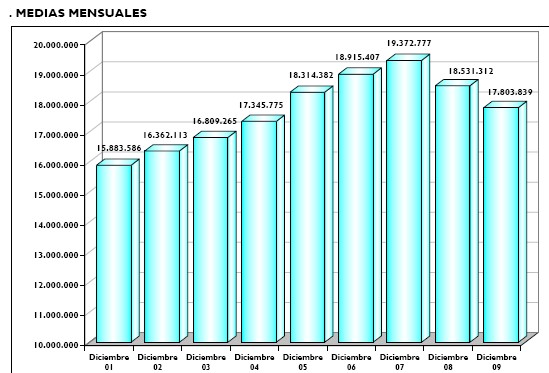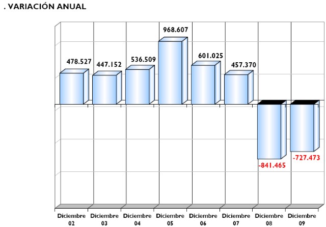 Pese a ello, según destacó el Ministerio de Trabajo, el descenso de la afiliación en 2009 revela una "moderación" en la pérdida de cotizantes con respecto a 2008, año en el que el sistema perdió 841.465 ocupados (-4,34%).