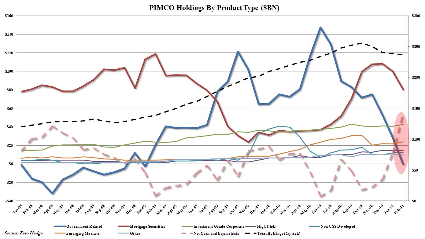 La última sorpresa saltó el miércoles cuando la web de información económica Zero Hedge publicó que el principal fondo de inversión de PIMCO, el Total Return Fund, el mayor fondo de bonos del mundo, había reducido a cero su exposición a la deuda pública de EEUU. Bill Gross, principal director de PIMCO, ya expresó hace una semana sus dudas sobre el mercado de treasuries, ante el fin del programa de compra de bonos de la Reserva Federal, el polémico Quantitative Easing 2 (QE2):