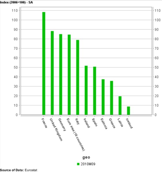 El promedio de la zona euro se encuentra un 15% por debajo de los niveles de matriculaciones de 2006, lo que denota que la recuperación no ha sido aún completa, excepto en Francia. Sin embargo, los niveles de los países donde más ha golpeado la crisis son mucho peores. Irlanda y España se encuentran un 50% por debajo, Grecia y Estonia casi el 65% y a la cola de Europa están Letonia (-81%) e Islandia (-91%), países donde la crisis ha sido devastadora.