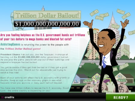 El juego se llama "el rescate financiero del billón de dólares", en relación al plan que tiene en marcha el Gobierno de EEUU para salvar a las empresas financieras que se han visto arrastradas por la crisis.