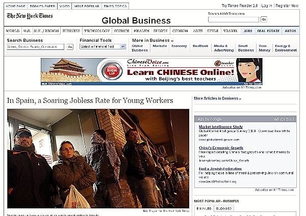 La desastrosa gestión del Ejecutivo de Zapatero no se libra de las críticas del diario: "Sumado a los males de España, su Gobierno no es capaz de inyectar más estímulo y ofrecer más apoyo para la creación de empleo , mientras su economía languidece como una de las más débiles de Europa" sentencia. "Están pagando el precio por sus esfuerzos para hacer más fácil poner a la gente joven a trabajar" asegura "con una parte desproporcionada de los jóvenes españoles empleados con contratos temporales".