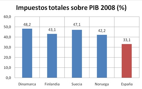 Entre buena parte de la ciudadanía e intelectuales en España, existe una gran admiración hacia el modelo económico y social escandinavo. Se dice que países como Suecia, Dinamarca, Noruega o Finlandia han llegado a encontrar el equilibrio perfecto entre la eficiencia (debida a la economía de mercado) y la equidad (debida a un Estado del bienestar muy grande, que se alimenta de impuestos muy elevados). Esta admiración lleva a muchos a pensar que en realidad tener impuestos altos no es nocivo para el crecimiento económico.