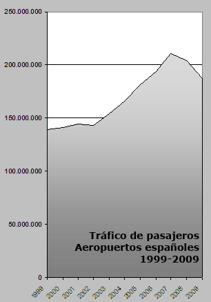 Los aeropuertos españoles gestionados por AENA no sólo pierden dinero sino también pasajeros: un 8,1% de pasajeros con respecto a 2008. Prácticamente todos los aeropuertos pierden tráfico a excepción de Santander, Santiago y los recién inaugurados Huesca y Burgos.