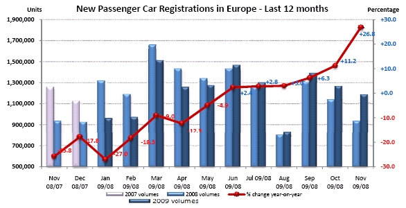 El grupo PSA (Peugeot-Citroën) se mantiene con un ligero descenso de ventas del 1,8%. La francesa Renault ha vendido más coches que en 2008 gracias a la rumana Dacia, fabricante de coches económicos, que ha experimentado un espectacular incremento del 27,3%. El grupo Ford, que incluye Volvo, desciende un 7,7% las ventas, un punto menos que sus compatriotas de General Motors, lastrado por las crisis de la casa matriz en Estados Unidos y por los malos resultados de Opel, su marca principal en el continente.