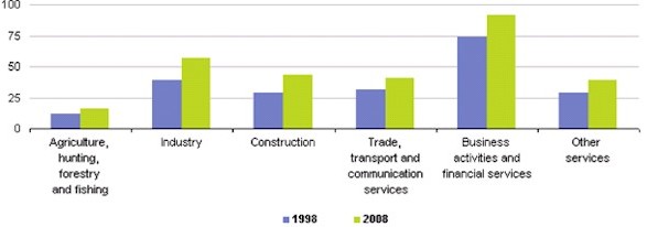 Productividad del trabajo en la UE (1998-2008)