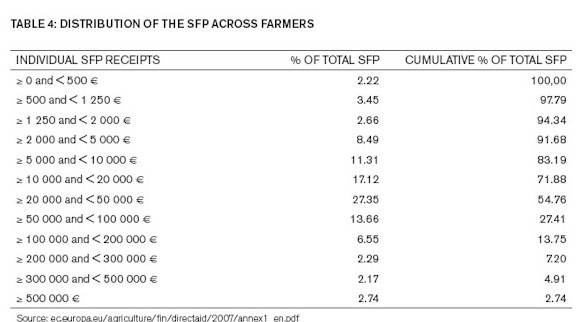Y todo este dinero no va a parar a esos pequeños agricultores que se suelen utilizar como símbolo de las ayudas agrarias. El 80% de las ayudas es superior a los 10.000 euros, es decir, son para explotaciones de tamaño medio-alto. De hecho, en los últimos años se han sucedido los escándalos, puesto que desde la Reina de Inglaterra a la Duquesa de Alba, pasando por multinacionales como Nestlé, han recibido ayudas que en teoría iban dirigidas a sostener a pequeños agricultores que no podrían competir sin estas subvenciones.
