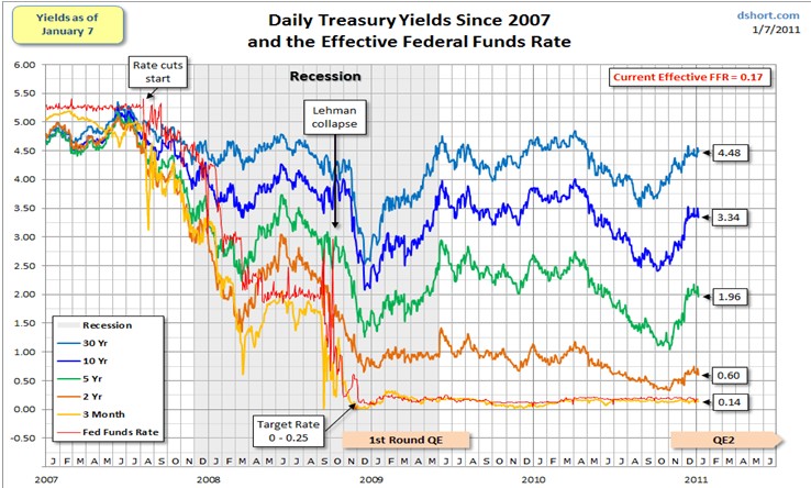 Las tensiones en el mercado de los bonos municipales, con un tamaño total de 2,9 billones de dólares, se han recrudecido por el reciente aumento de los tipos de interés tras el anuncio del presidente de la Reserva Federal de EEUU (FED), Ben Bernanke, sobre las nuevas medidas de expansión monetaria (compra de deuda), conocido bajo el programa Quantitative Easing 2, más el riesgo inflacionario que ello está produciendo.