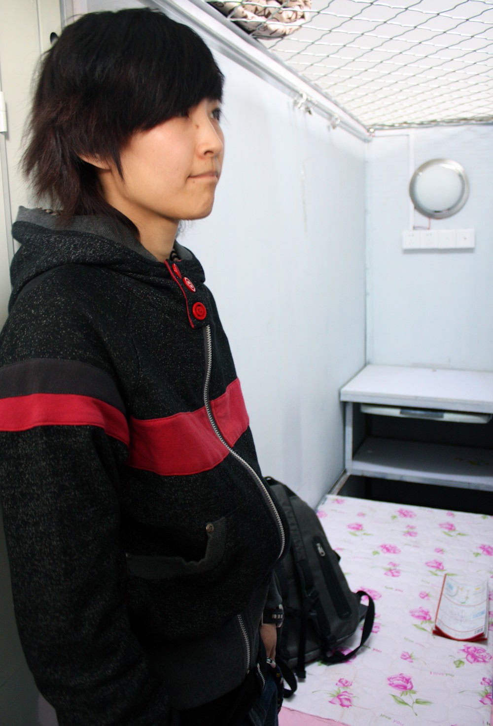 Una de las inquilinas de los pisos-cápsula es la joven Wen Jiao, de 22 años, quien asegura que “no tiene dinero y que no puede pagar más que por una habitación como esta”. Wen afirma que espera estar aquí sólo uno o dos meses porque no es cómodo, no puede ver el amanecer y que lo eligió únicamente porque “el precio es barato y porque se encuentra en una etapa de transición en la vida”.