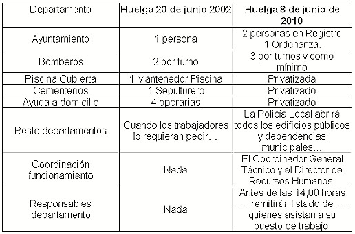 Y se pregunta la propia Comisiones Obreras: "¿Por qué son tratados de forma diferente los servicios mínimos cuando hacemos huelga contra Aznar, de cuando hacemos huelga contra Zapatero?" El cuadro que define las diferencias es el siguiente: