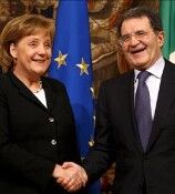 Merkel visitó Roma en su condición de presidenta de turno de la UE, como parte de un periplo por los seis países de la UE que participaron en la firma del Tratado de Roma el 25 de marzo de 1957.