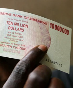 La falta de dinero en efectivo ha llevado incluso a uno de los principales portales de Internet de Zimbabue a aceptar productos alimenticios como pago por sus servicios. La descontrolada inflación ha causado el desabastecimiento y los precios de los pocos productos que se encuentran en los supermercados pueden cambiar varias veces en un solo día, lo que unido a la rápida depreciación del dólar zimbabuense obliga a la población a sacar su dinero del banco y gastarlo antes de que pierda todo su valor.