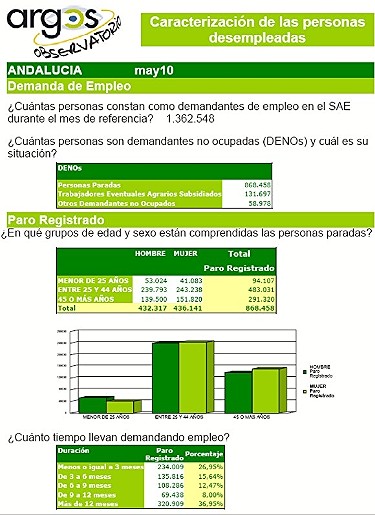 De los más de 1.360.000 parados registrados, esto es, demandantes de empleo existentes en Andalucía, casi 100.000 son jóvenes menores de 25 años. Más de 130.000 son trabajadores eventuales agrarios subsidiados y más de la mitad son mujeres.