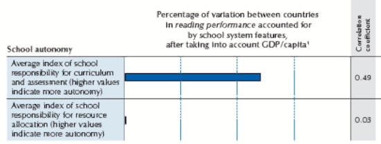 Relación entre autonomía para las escuelas y resultados (Fuente: Informe PISA)