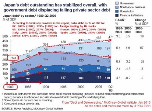 Bajo este paradigma de tipos de interés decrecientes no se anima con la presteza necesaria al desapalancamiento, o incluso se anima a que el sector público siga endeudándose en grandes cantidades por su coste nulo, como es el caso de Japón.