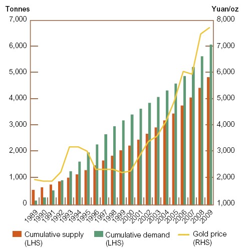 Aún más, lo que parece estar sucediendo es que los mismos bancos centrales han evolucionado hacia la dirección del mercado, pasando a ser compradores netos. Este es el caso en primer lugar de China, que no sólo ha pasado a ser el primer productor mundial de oro, sino que además del país no sale ya un gramo desde hace varios años al mismo tiempo que crecen con fuerza sus importaciones.